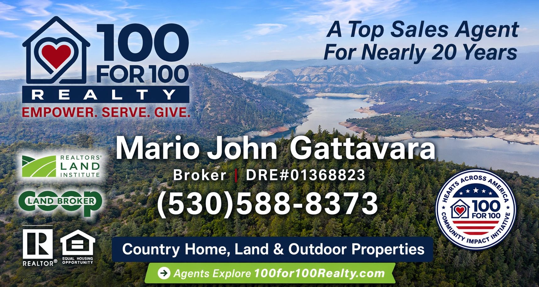 Copyright © 2024 100 For 100 Realty - 530LandSeller - Mario John Gattavara - All Rights Reserved.